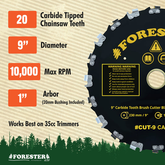 Forester Chainsaw Tooth Brush Cutter Blade - 9" (20 Tooth)Regular price $26.95 USDRegular priceUnit price per-