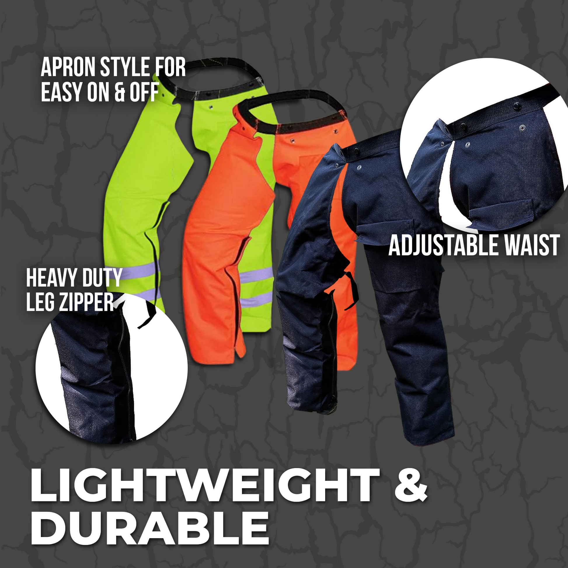 • ULTIMATE PROTECTION - These chaps are ANSI 107-2015 certified, and the safety green style adheres to Class E Standards when worn with a Class 2 or Class 3 Safety Vest.